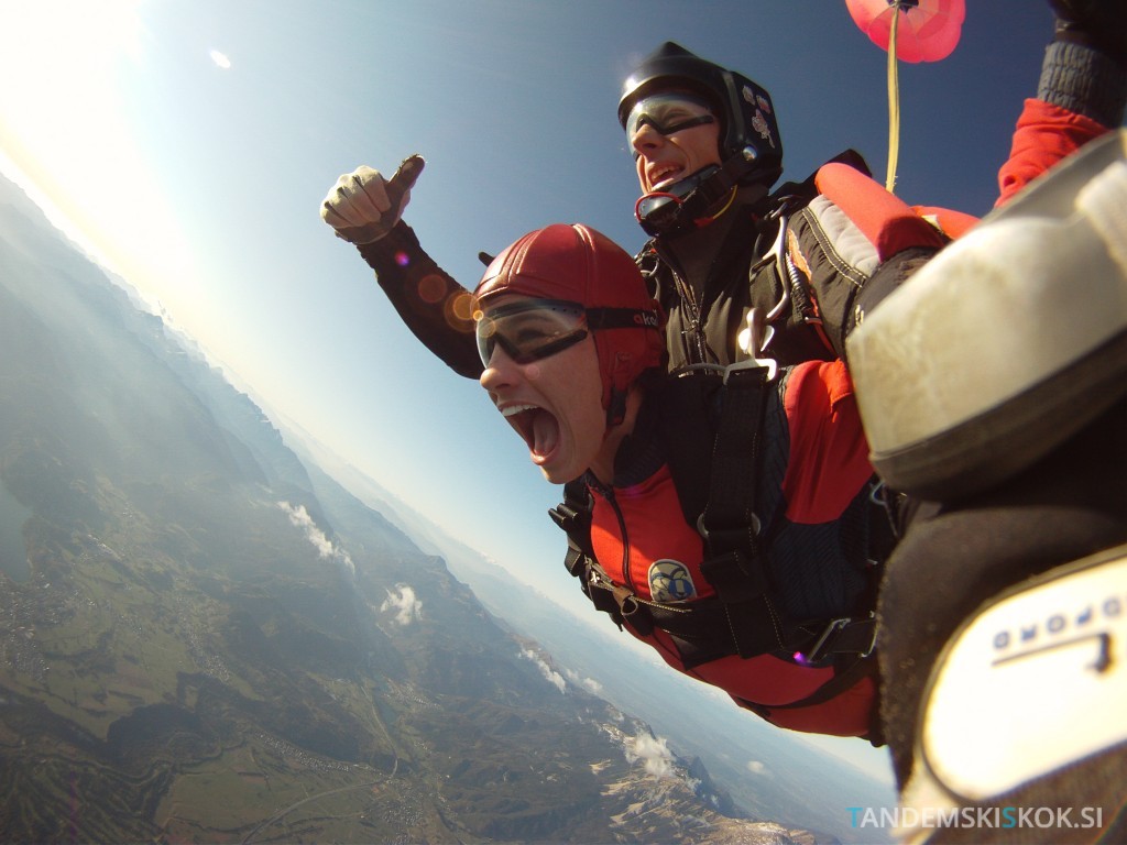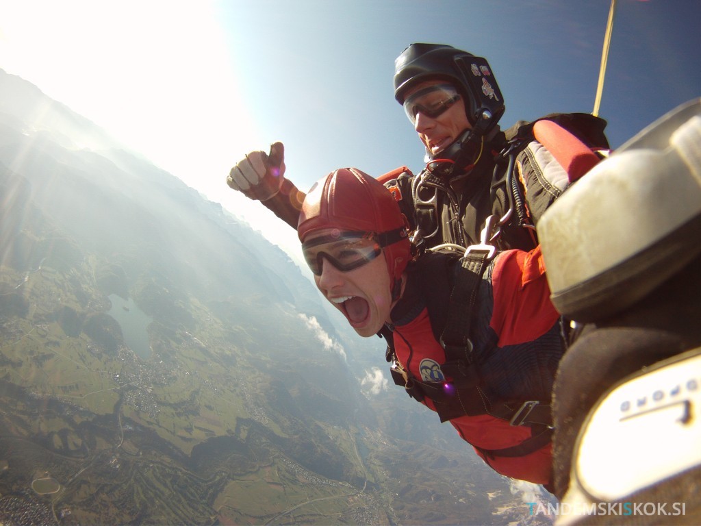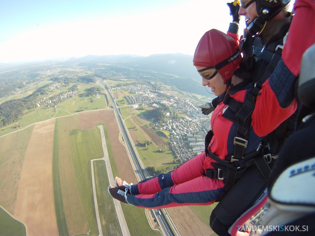 Tandemski padalski skok iz letala. Letališča Lesce, Slovenj Gradec, Portorož.
